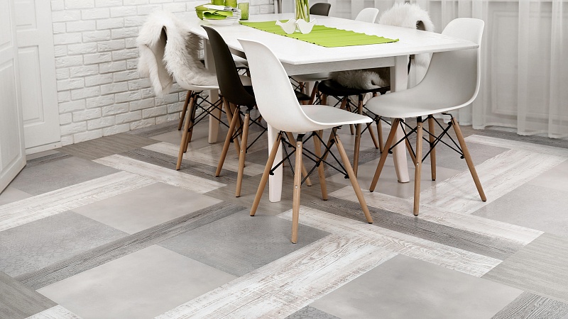 BLUES от Tarkett сочетает в себе ключевые преимущества трех напольных покрытий: красоту паркета, практичность линолеума и модульность плитки.